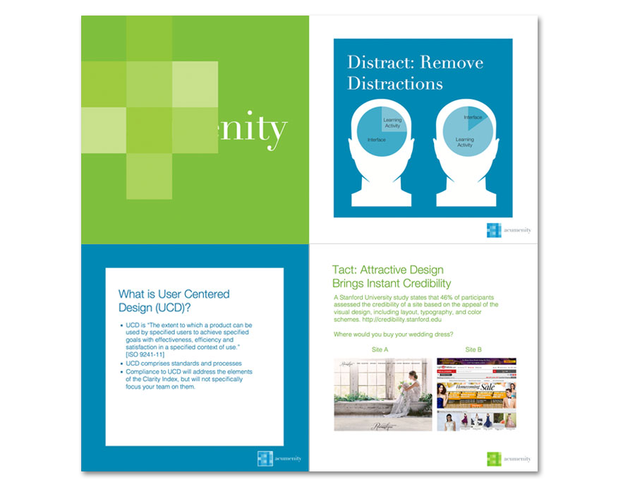 Acumenity is a development company. I developed the value proposition, visuals like the logo iconography, and style guide, and the buildout including the website, business cards, presentations and promotional items. The logo was directly inspired by Salvador Dali's painting, "Gala Contemplating the Mediterranean Sea". See the case study for details on the brand strategy I created for Acumenity.