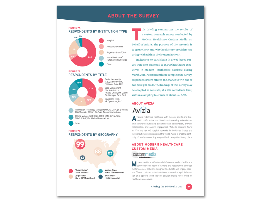 This is a custom content piece for Modern Healthcare, sponsored by Avisia. It featured a large number of graphs and charts that needed help to communicate effectively.