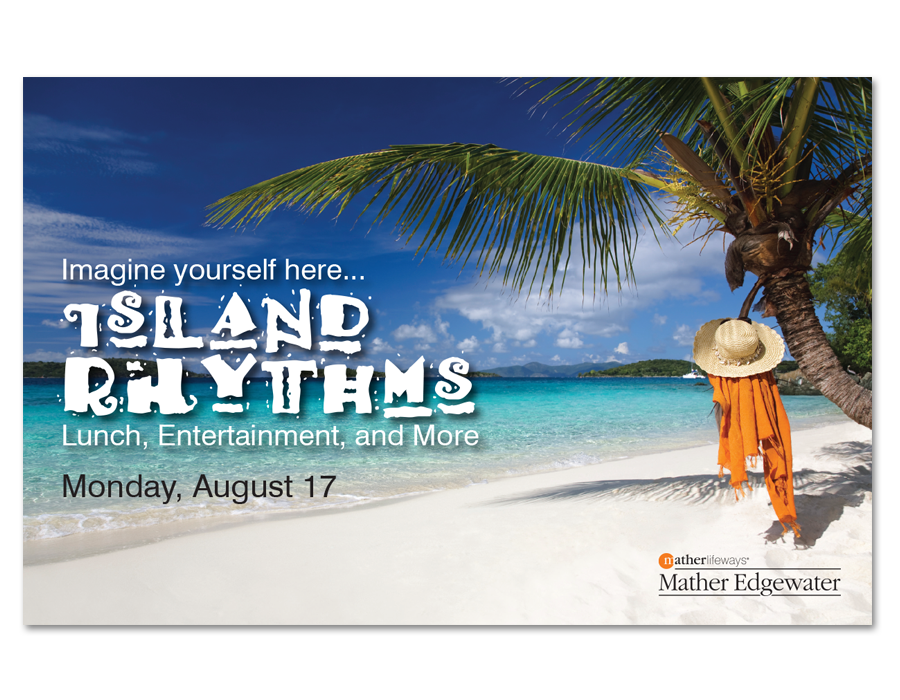 I created this series of postcards for events presented by Mather Edgewater.